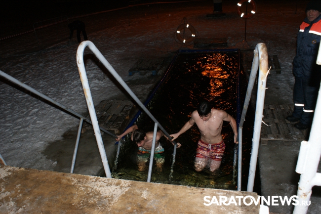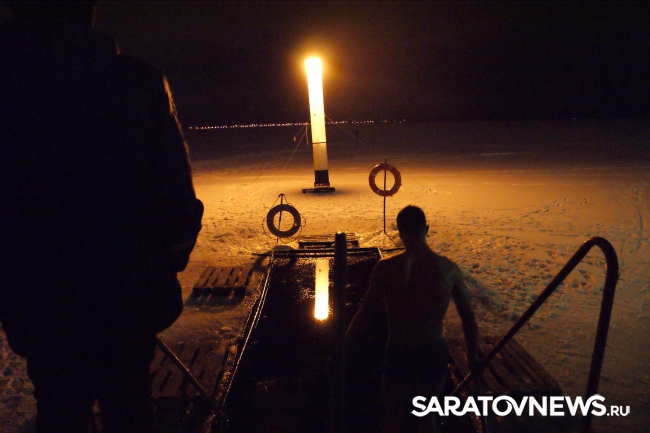 В Саратове начались традиционные Крещенские купания. Желающие совершить омовение в областном центре рассредоточились по двум организованным купелям: на набережной у Ротонды, а также в солярии в Затоне.