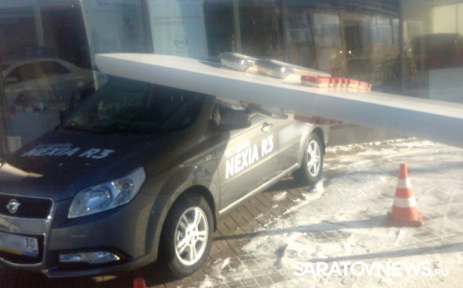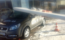 Поездка злоумышленника была не долгой, поскольку он запустил электродвигатель, но не включил гидроусилитель. Спустя некоторое время парень не справился с управлением и врезался в металлическое ограждение и рекламный баннер, от удара, рекламная конструкция упала на автомобиль "Рено", который был выставлен на площадке перед автосалоном.