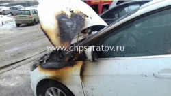 Прибывшим на место происшествия пожарным удалось быстро потушить пламя. Благодаря этому оно не успело перекинуться в салон автомобиля. Пострадала только передняя часть машины.