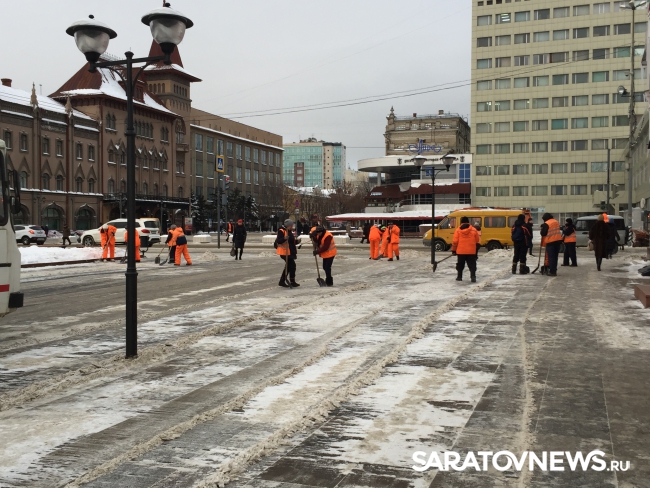 Очистка обочин и парковочных карманов проводится на участке от Театральной до Соборной площади и на площади Чернышевского.