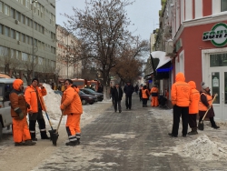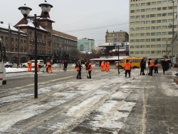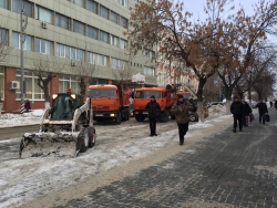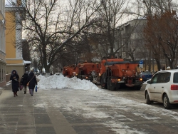 "Кроме того, в настоящее время продолжаются мероприятия по уборке Московской, в том числе ликвидации последствий коммунальной аварии", - отметили в администрации. От снега очищается участок от Октябрьской до Музейной по нечетной стороне Московской.
