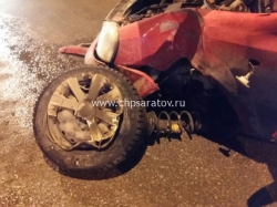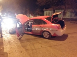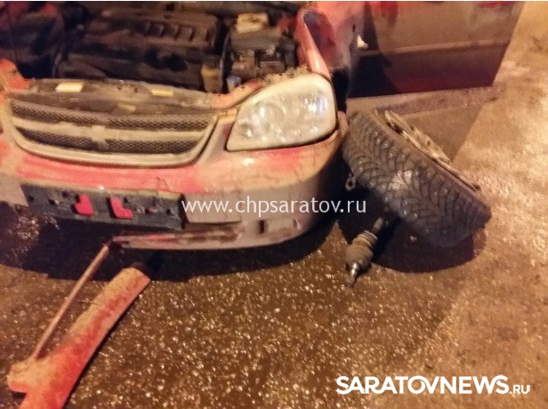 Минувшей ночью в центре Саратова в результате аварии серьезно пострадал автомобиль "Шевроле Лачетти". Как сообщает "ЧП Саратов", авария произошла в районе пересечения улиц Соколовая и Рахова.