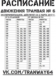 С сегодняшнего дня на трамвайных маршрутах №4 и №6 в Саратове вводится экспериментальное расписание. Об этом сообщается в группе “Трамваи и троллейбусы Саратова” в социальной сети “Вконтакте”.