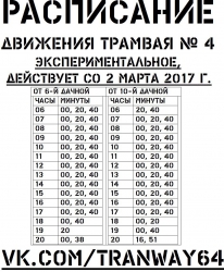 Указано, что интервал движения трамвайного маршрута №4 увеличен, зато ждать вагона на участке от 6-й Дачной до ост. "Стрелка" можно ровно 10 минут, а не от 10 до 17, как было раньше. Таким образом, от 6-й дачной в сторону 10-й дачной можно уехать на трамвае №4 начиная с 6 утра в начале каждого часа, а также на 20-й и 40-й минутах. Каждую 10, 30 и 50 минуты от 6-й дачной в сторону школы №52 будут отправляться вагоны трамвая №6.