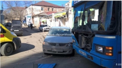 Как пишет "ЧП-Саратов", ДТП было днем в воскресенье. Легковушка поворачивала с улице Тулупная на улице Чернышевского. Водитель иномарки не уступил дорогу автобусу. Машины столкнулись, некоторые поручни в автобусе оказались вырваны из креплений. 47-летняя пассажирка автобуса упала на поручень, из-за чего он сломался. После этого женщина ударилась головой о сиденье общественного транспорта. Пострадавшую отвезли в больницу.