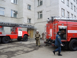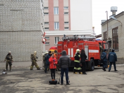 Пожарные "эвакуировали" персонал вуза и учащихся, в общей сложно на улице оказалось порядка 400 человек. Спасатели использовали лестницу, для эвакуации людей с четвертого этажа здания, кроме того под окнами был развернут куб жизни.