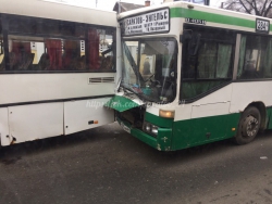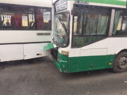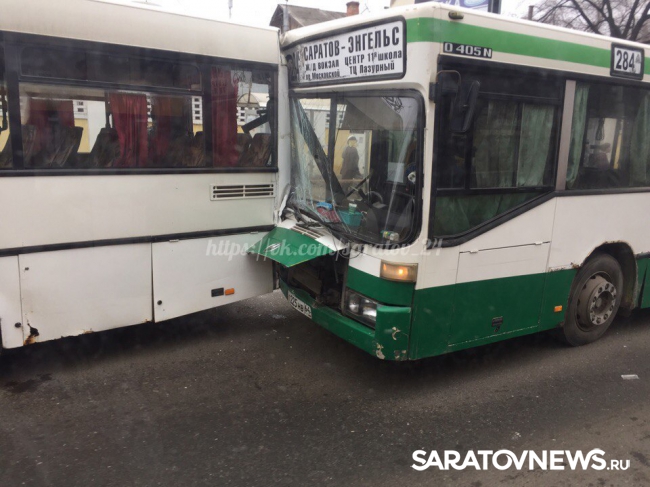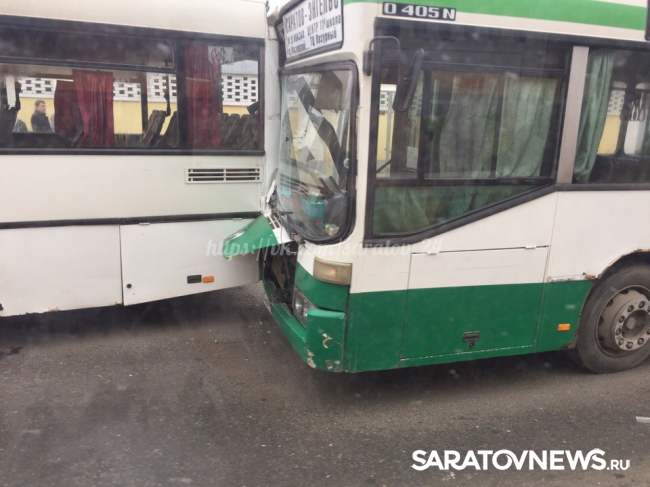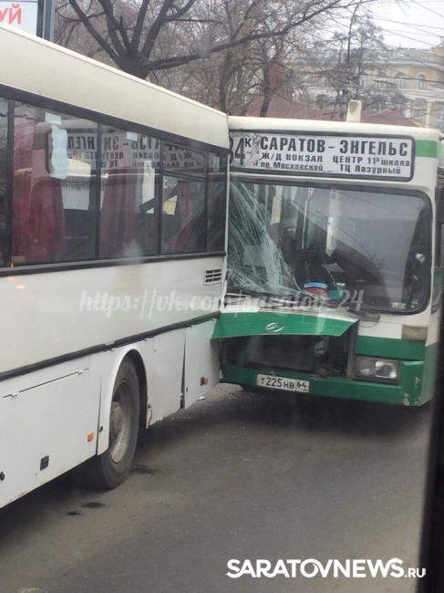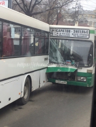 Сегодня утром в центре Саратова столкнулись два пассажирских автобуса.