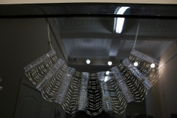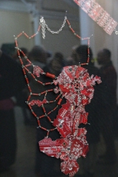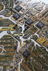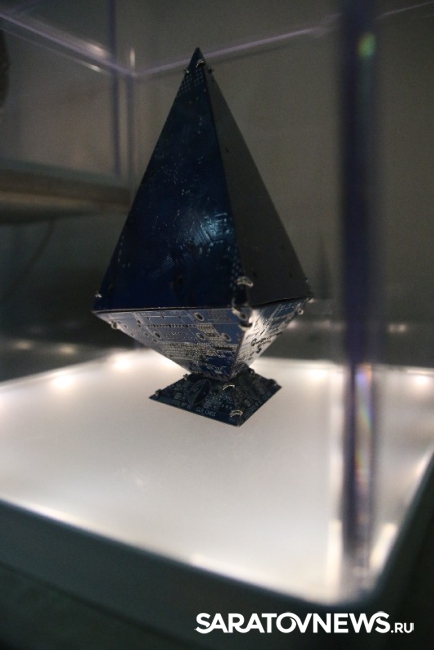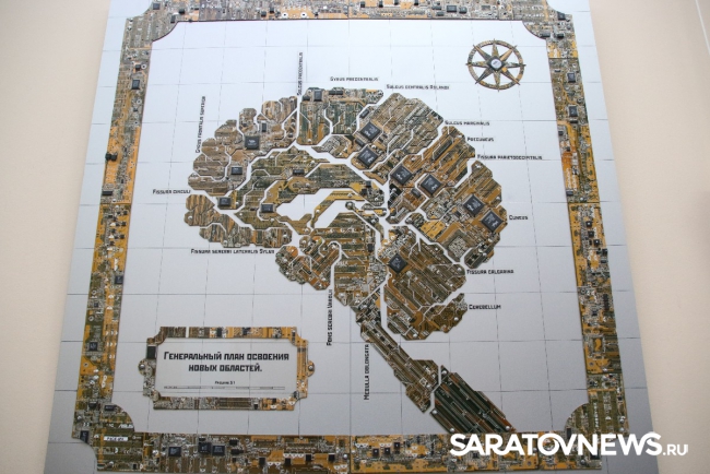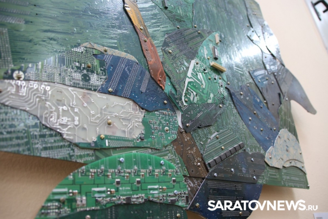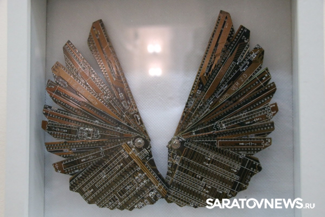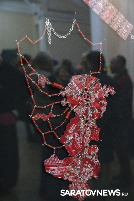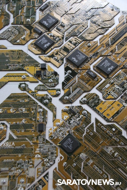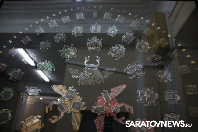 "Все представленные работы взаимосвязаны идеей технического прогресса и эволюции. Мне хочется думать о будущем, но делаю это традиционными способами, то есть с помощью физического носителя. Материал, для этого используемый, является "прошлым будущим", то есть это отжившие свой век микросхемы, которые попали ко мне, потому что уже устарели или сломались. Это двоякое объединение прошлого с будущим, традиционного с новаторством. Утопическое желание примирить людей, которые хотят делать руками, и тех, кто говорит, что будущее за компьютером. Истина посередине", - пояснила Алина Белоусова.