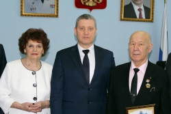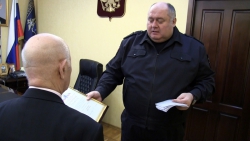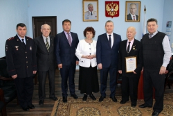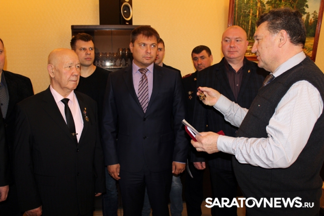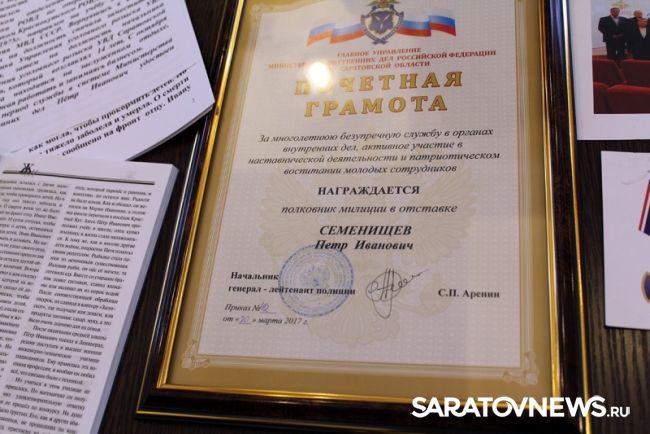 Руководитель ГУ МВД по Саратовской области Сергей Аренин в здании Главка поздравил с юбилеем полковника милиции, заслуженного работника МВД СССР Петра Ивановича Семенищева.
