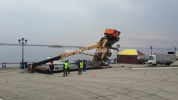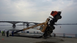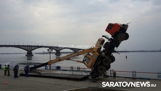 Сегодня около 15:00 в Саратове в районе второго причала на Набережной Космонавтов опрокинулся подъемный кран "Галичанин".