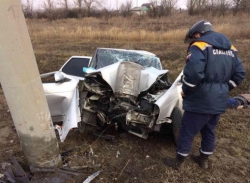 По данным СМИ, рядом с поворотом на село Славянка водитель "Лады Приоры" с номерами Чеченской Республики потерял управление и врезался в столб. На месте погиб водитель легковушки и его пассажирка. Еще два человека из салона "Приоры" получили травмы.