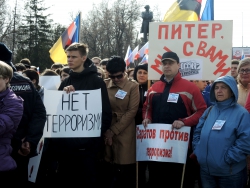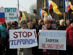 "Терроризм принес Петербургу боль, погибли невинные люди. Мы должны понимать, что каждый россиянин должен бороться против терроризма. Но Питер выдержит. Фашисты 872 дня держали его в блокаде и они выдержали", - сказал председатель областного отделения "Боевого братства" Сергей Авизниязов.