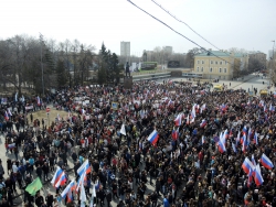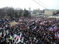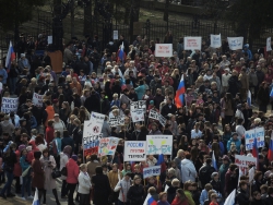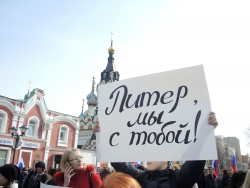 Митинг начался с минуты молчания в память жертв теракта в Санкт-Петербурге, унесшего жизни 14 человек.