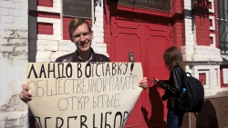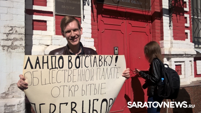 Сегодня перед зданием Общественной палаты Саратовской области прошел одиночный пикет. Его устроил активист Сергей Окунев, представитель общественно-политического движения "Новое поколение" в Саратове. Он вышел к крыльцу ОПы с плакатом "Ландо в отставку! Общественной палате - открытые выборы!". Мужчина призывал освободить главу Общественной Палаты Александра Ландо от должности и призывал устроить голосование для избрания членов и руководителя палаты.
