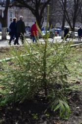 В минувшие выходные 11 молодых елей были высажены у офиса "Ростелеком" в Мирном переулке взамен старых деревьев, угрожавших сохранности коммуникаций и безопасности жителей города.