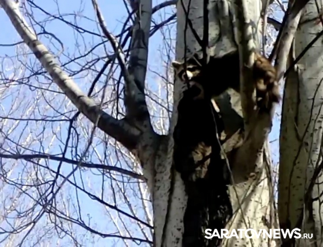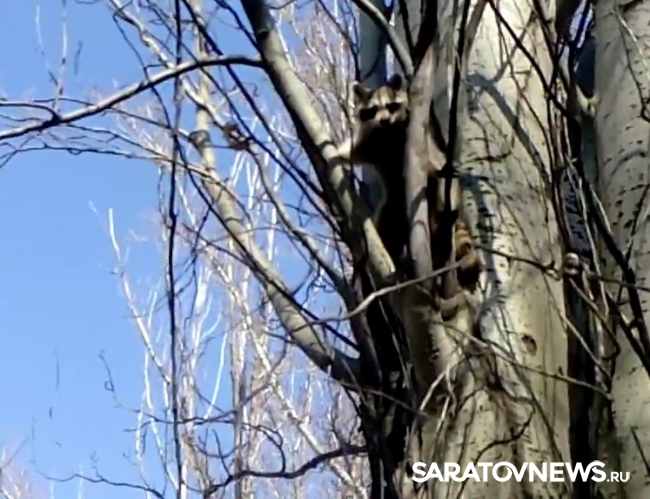 Сегодня утром жители Балаково Саратовской области заметили в городе енота. Как сообщили жители города в социальных сетях, дикое животное сидело на тополе рядом со зданием Санэпидемстанции.