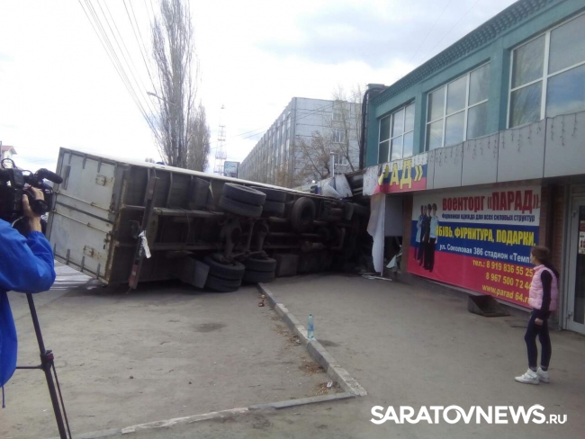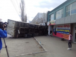Сегодня днем в Саратове опрокинулся "Камаз". Как сообщили очевидцы случившегося, авария произошла на перекрестке улиц Соколовой и Крайней.