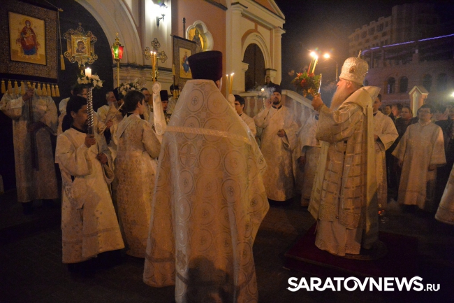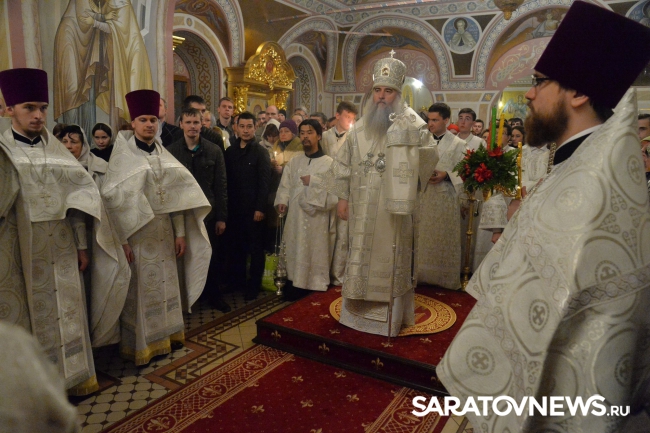 Ночное Пасхальное богослужение совершил Митрополит Саратовский и Вольский Лонгин.