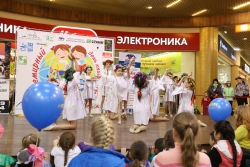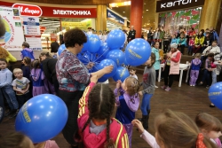 Медицинский центр "Газмедцентр" порадовал ребятишек надувными шарами: за считанные секунды восторженная ребятня разобрала горы синих шаров, "припаркованных" на сцене.