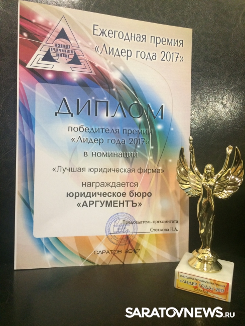 Юридическое бюро "АргументЪ" принимало участие в ежегодной региональной премии «Лидер года 2017». Проводилось данное мероприятие по итогам работы за 2016 год среди лучших предприятий регионов Поволжья в сферах индустрии эстетики, красоты, здоровья, туриндустрии, услуг.