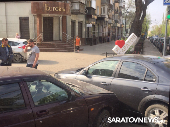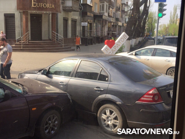 Сегодня около получаса назад в центре Саратова, на перекрестке Вольской и Советской не разъехались две легковушки. Как сообщили Saratovnews очевидцы случившегося, на перекресте столкнулись "Форд Мондео" и, предположительно, "десятка". Машины встали недалеко от светофора, рядом с которым находится стела "Я люблю Саратов".