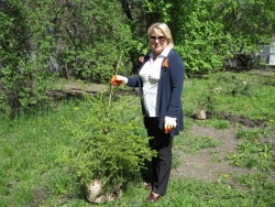 С большим энтузиазмом восприняла идею высадки елок и член совета Галина Грибкова: "Мы сразу поддержали инициативу нашего председателя Темура Мамоевича Даврешяна. Я вообще дачница, и у себя на участке всю рассаду давно высадила. Теперь вот здесь тружусь. Настроение у всех отличное, погода солнечная, думаю, деревья примутся, ведь мы вкладываем свою душу в эту работу, а растения все чувствуют".
