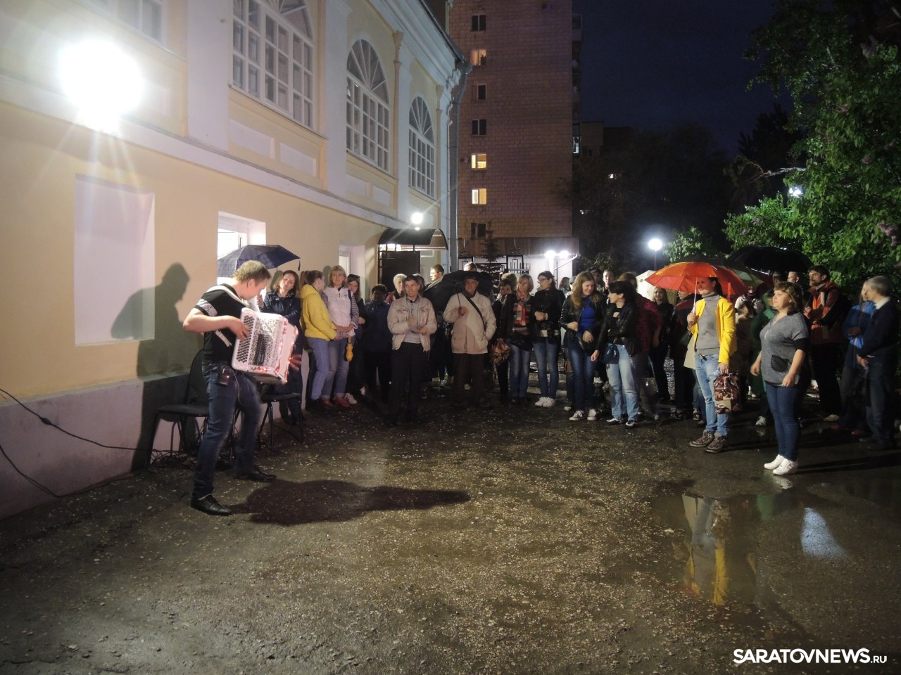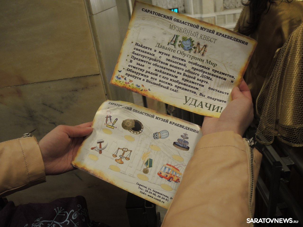 В "Ночь музеев" музей краеведения пользовался особой популярностью. На входе посетителям раздавали карточки, где были нарисованы различные экспонаты, которые разместили по всему музею. Любопытным саратовцам предлагалось найти их. При этом в месте нахождения каждого такого "символа" какого-то времени развернулось целое театрализованное шоу. Сотрудники музея, облачившись в наряды разных эпох, загадывали участникам квеста загадки о предметах, которые нужно было найти. За время участия в игре саратовцы могли обойти весь музей, посетив выставки "Пою тебя, моя Россия", "Оружейная кладовая", "Живая вода саратовских родников". У здания музея проходили выступления инструментальных коллективов.