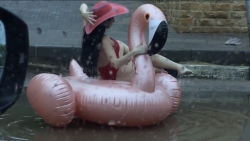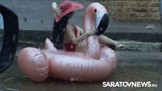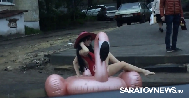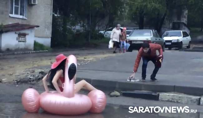 В Саратове в районе 2-й Дачной горожане устроили фотосессию в луже с надувным кругом в виде фламинго. Об этом в социальной сети "Саратов онлайн" сообщили очевидцы фотосессии.