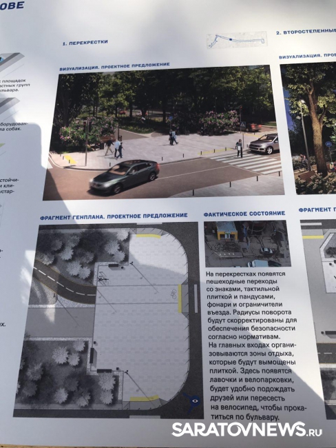 В течение 1,5 месяцев разрабатывалась концепция благоустройства, будет организован бульвар протяженностью 2,5 километра. Пешеходная зона сужена не будет. Будут организованы перекрёстки, велосипедная дорожка, которая будет проходить через весь бульвар. Для владельцев животных будет организована специальная площадка для выгула. "Специальная. Такого у нас ещё не было", - отметил врио губернатора Валерий Радаев.