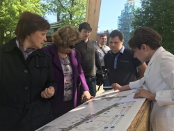 Проектировщик Николай рассказал, что детские площадки будут многовозрастные, их поделят на несколько зон для детей постарше и помладше. В районе шахматного клуба установят шахматные столы, арт-объект шахматную фигуру. Его коллега Татьяна добавила, что между деревьев можно будет прогуливаться по специальным дорожкам. Входные узлы будут оформлены плиткой, а пешеходная зона будет асфальтовая.