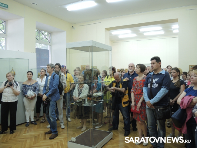 Глава союза художников Палеха Василий Макашов сообщил, что на саратовской выставке представлена лучшая коллекция современных мастеров лаковой миниатюры. "У каждого из них свое видение, но все работы объединены палехской традицией", - пояснил мастер. В своей речи он назвал саратовцев земляками и отметил, что художники Палеха уже расписывали храмы в Саратовской области, в частности, нижнюю часть стен Троицкого храма в Саратове. Кроме того, они создавали роспись Грановитой палаты московского Кремля, а также украшали храмы Абхазии.