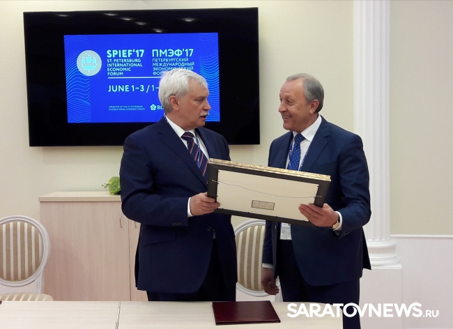Встреча прошла в рамках Петербургского международного экономического форума. На мероприятии была подписана дорожная карта о сотрудничестве Саратовской области и Сант-Петербурга на 2017-2020 годы.