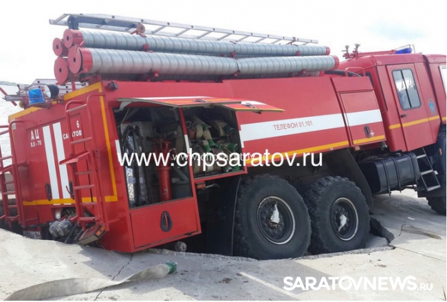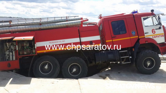 Сегодня днем в Саратове на Новой Набережной под асфальт ушла пожарная машина. По информации "ЧП-Саратов", автоцистерна провалилась во время тренировки, которую проводили члены пожарной команды. Это произошло около полудня.