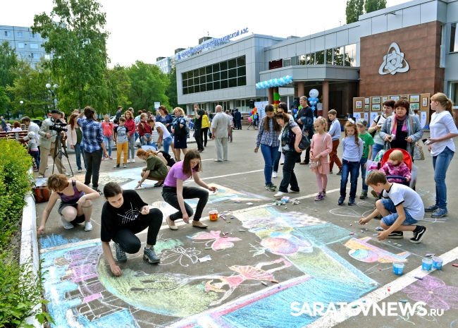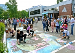 Под открытым небом развернулась творческая мастерская конкурса детского рисунка на асфальте с символичным названием "Я – гражданин страны Росатом", посвященного 25-летию концерна "Росэнергоатом". На глазах у зрителей яркие неповторимые композиции создавали учащиеся детской художественной школы, которым помогали все – кто творческими идеями, а кто и непосредственным участием в создании живописных картин.