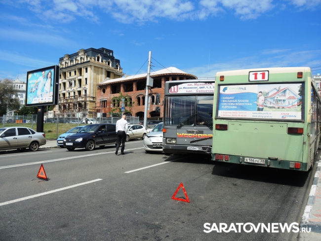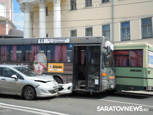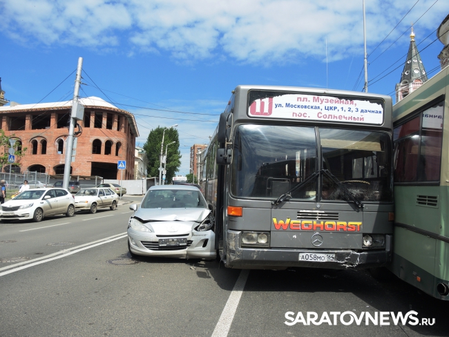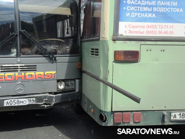 Несколько минут назад в Саратове произошла массовая авария с участием двух автобусов. Дорожно-транспортное происшествие произошло у музея краеведения, неподалеку от пересечения улицы Московской и Лермонтова.