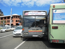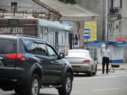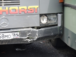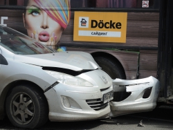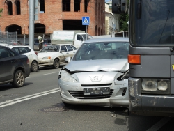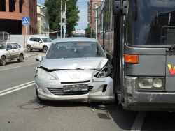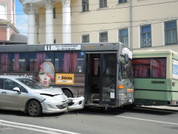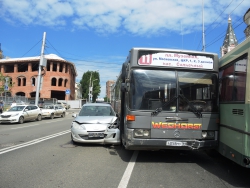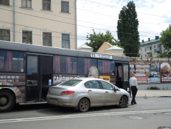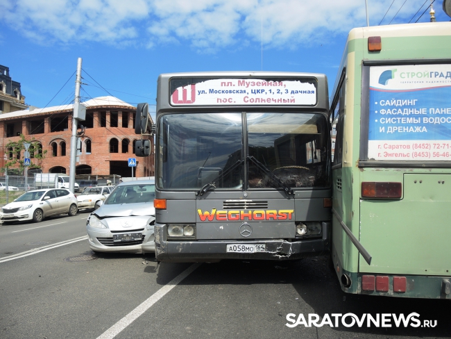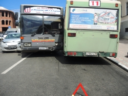 Следуя по Московской в сторону набережной, автобус маршрута №11 столкнулся с "Пежо" и припаркованным автобусом аналогичного маршрута. Иномарка получила серьезные повреждения передней части, от удара у нее отвалились номера. Водитель "Пежо" от комментариев отказался, заявив, что он не является виновником этой аварии.