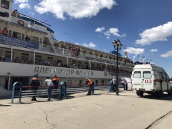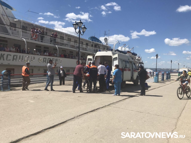 Теплоход "Александр Фадеев", который перевозил туристическую группу пенсионеров, вынужден был остановиться на четвёртом причале набережной в Саратове. Одной из пассажирок стало плохо с сердцем. За 20 минут до прибытия к причалу приехала "скорая". Медики оказали женщине необходимую помощь, после чего вынесли ее и повезли в больницу.