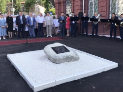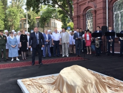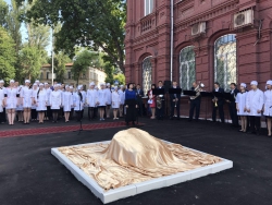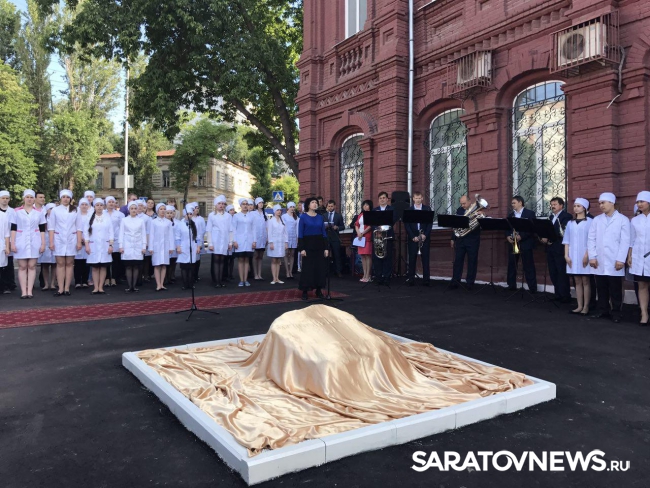 Замминистра здравоохранения региона Наталья Мазина отметила важность военных медсестер на войне, а также сказала слова благодарности временно исполняющему обязанности губернатора региона Валерию Радаеву, который содействует в появлении у стен колледжа памятника. Надпись на камне гласит: "Здесь будет установлен памятник военной медицинской сестре в память о подвиге саратовских медсестер во имя жизни и здоровья соотечественников".
