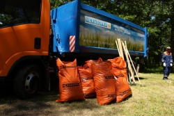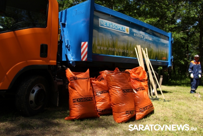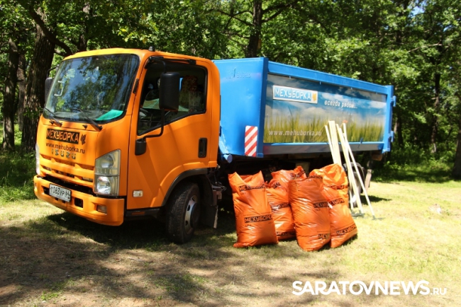 Далее, дружной компанией под присмотром вожатых ребята совместно с сотрудниками компании ООО "Мехуборка-Саратов" навели порядок на зеленой зоне спортивно-игровой площадки, собрав мелкий мусор и сухую траву.