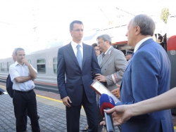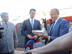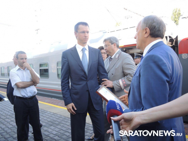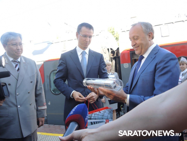 После осмотра вагонов врио главы региона вручил Петру Иванову благодарственное письмо, сказав: "Мы давно не обновляли сотавы поездов, поэтому очень важно, что было принято такое решение и я хотел бы от всей души, от всех жителей Саратовской области, поблагодарить Вас". В свою очередь гендиректор "ФПК" вручил Валерию Радаева модель современного поезда, а врио главы региона выразил надежду увидеть в будущем такие поезда на Приволжской железной дороге. "Мы видим перспективы, самые настоящие. Тут нужно говорить о событии, вот сегодня это событие. 65 пассажирских вагонов, это уже не перспектива, а реальное решение. Нам очень важно, чтобы инвестиции были направлены на развитие нашей железной дороги. Инвестиции - это совершенно другой подход к наполнению регионального бюджета. Компания вносит существенный вклад в наполнение бюджета", - заключил Валерий Васильевич.