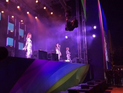 Выпускники встретили группу тепло и пели известные хиты вместе с исполнительницами. Часовое выступление коллектива закончится праздничным салютом.
