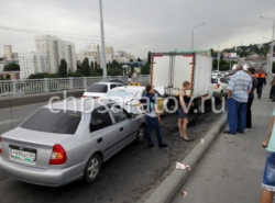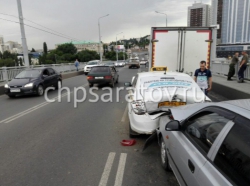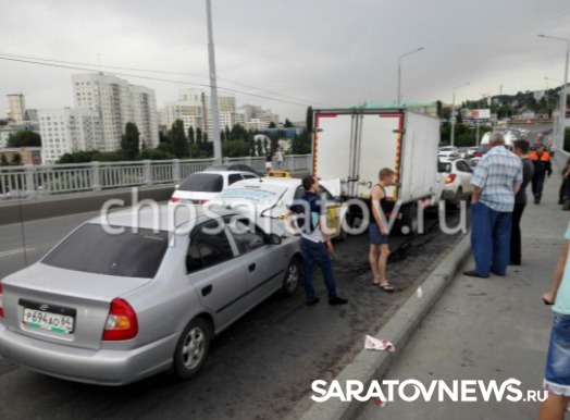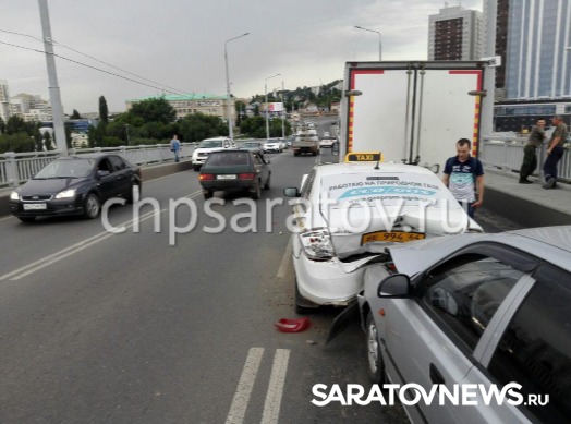 На мосту Саратов — Энгельс вчера случилось массовое дорожно-транспортное происшествие. Как сообщает пресс-служба городской ГИБДД, в результате аварии пострадали девушка и маленький ребенок.