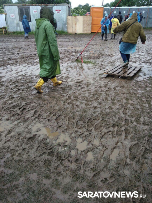 "Организация парковки была отвратительная, чтобы заехать на парковочное место нужно объехать парковку по кругу. Соответственно, основную дорогу размесили довольно быстро. Мы не смогли доехать до парковочного места, встали в вереницу машин, которые уже застряли", — говорит участник фестиваля. В итоге Максим оставил свой транспорт на обочине и планировал, что после завершения дождя найдет ей парковочное место. Посмотрев открытие и несколько выступлений, промокнув и замерзнув, они с друзьями решили вернуться к машине. "На парковке обнаружилось, что вокруг уже стоит три-четыре машины, которые также застряли и бросили машины. Обсудив ситуацию с владельцами этих машин, решили, что оставляем так до утра", — добавил Максим Портнов. Но, проснувшись утром, саратовец обнаружил, что дорога, которая до этого была просто мокрой и скользкой, превратилась в "жижу", ее размесили трактора, которые уже начали вытаскивать автомобили, решившие уехать.