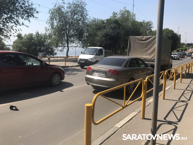 Под мостом "Саратов-Энгельс" в грузовую "ГАЗель" врезался автомобиль "Ауди", после чего с ним столкнулись "Форд" и "Черри". Из-за аварии на Большой Затонской образовалась пробка. Так как автомобили полностью перекрыли одну полосу движения в сторону набережной, автомобилистам приходится объезжать ДТП по встречке.