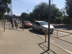 Сегодня около получаса назад на улице Большая Затонская в Саратове произошла массовая авария. Столкнулись три легковых автомобиля и "ГАЗель".