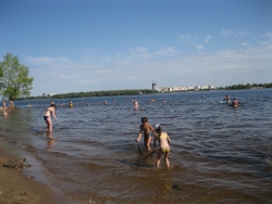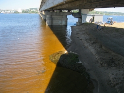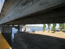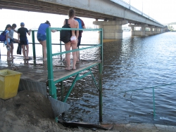 Уже на сходе с моста предстает удручающая картина. Наш пляж ежегодно стремительно уменьшается в размерах, и в скором времени, если не предпринять срочных мер и сходить будет некуда. Все лестницы наполовину висят в воздухе. В этом году из-за высокого уровня воды от обширной территории пляжа осталась лишь узкая полоска песка с обрывистыми берегами, но и ее никто не торопится обустраивать, хотя времени для наведения порядка природа в этом году дала предостаточно.