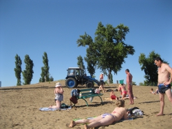 О том, как организована уборка территории – разговор особый. На пляже убираются всего пять человек, но поскольку участок длинный, для перемещения по нему они пользуются трактором ДТ. Естественно, звуки работы трактора мешают отдыхающим, кроме того техника ездит ездит буквально по головам отдыхающих, а в это время в ковше трактора сидят работники службы благоустройства,так их доставляют к местам сбора мусора.