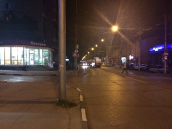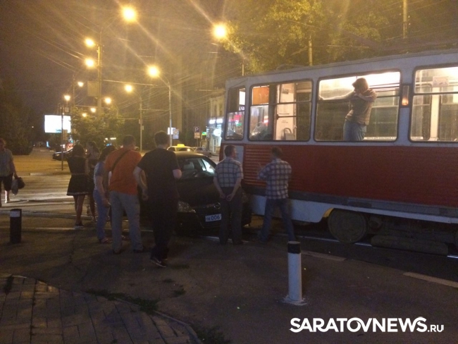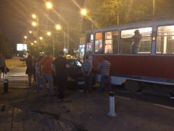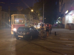 В Мирном переулке произошло дорожно-транспортное происшествие с участием трамвая и иномарки.