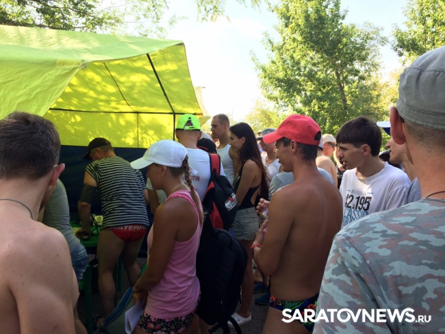 Всем участникам выдали розовые шапочки и специальные надувные буи. Участников от имени врио губернатора Валерия Радаева поприветствовал зампред областного правительства Иван Кузьмин.