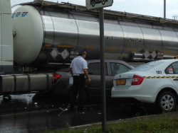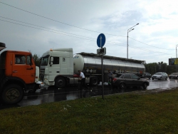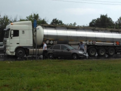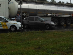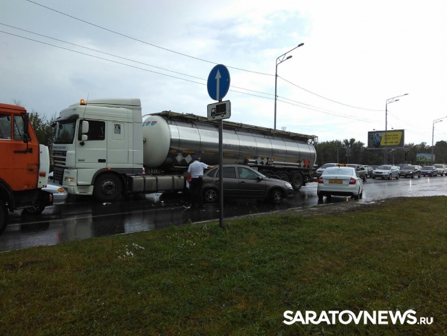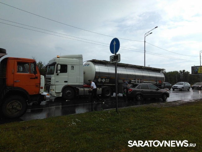 Сегодня в Саратове на Усть-Курдюмском шоссе столкнулись бензовоз и "Лада".